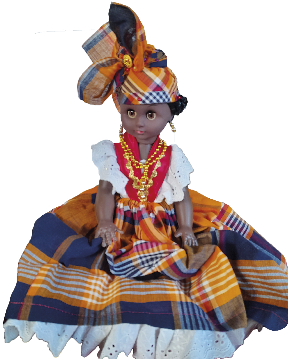 Petite poupée créole à collectionner, habillée de Madras et broderie anglaise, bijoux créoles assortis.